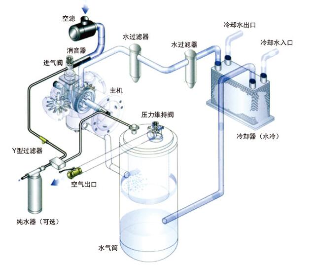 ZW系列水潤滑無油螺桿空壓機使用合乎飲水標準的純水潤滑、而不使用潤滑油,并使用高性能的水過濾過濾雜質、因此所提供的是純凈的壓縮空氣。